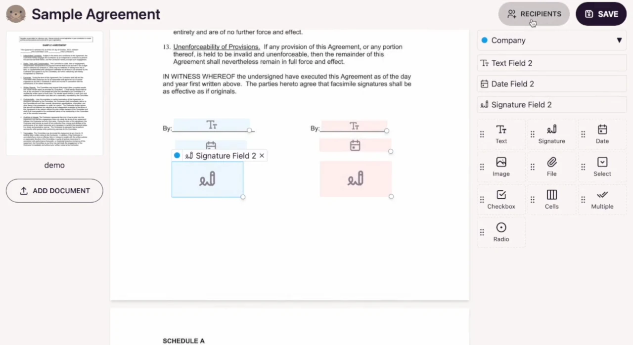 Mit Docuseal können PDF-Dateien digital unterschrieben werden. Dazu können Dateien in Docuseal hochgeladen werden, im Folgeschritt können Felder für Namen, Datum, freie Texte, Bilder, Unterschriften, ... definiert werden. Die dadurch erstellten Vorlagen können an beliebig viele Empfänger verschickt werden.