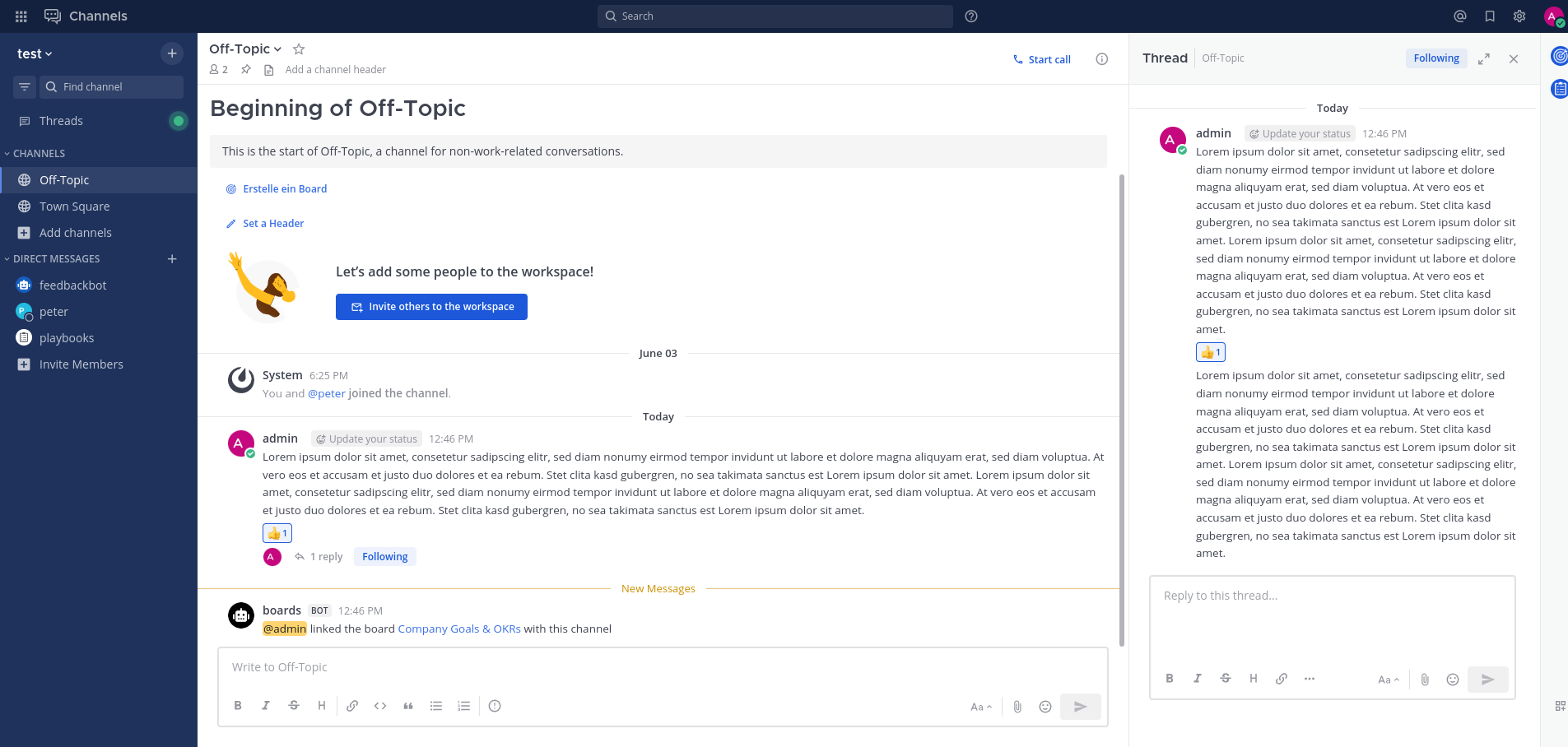 Mattermost ist das perfekte Tool für die Chat-Kommunikation in Organisationen jeder Größe. Die Anwendung ist intuitiv zu bedienen und wird kontinuierlich von einem engagierten Unternehmen weiterentwickelt. Wer bereits mit Slack vertraut ist, wird sich auch in Mattermost sofort zurechtfinden – denn es bietet dieselbe hohe Benutzerfreundlichkeit und Funktionalität. Egal, ob kleine Teams oder große Unternehmen: Mattermost ist eine starke Alternative zu Slack und steht ihm in nichts nach.